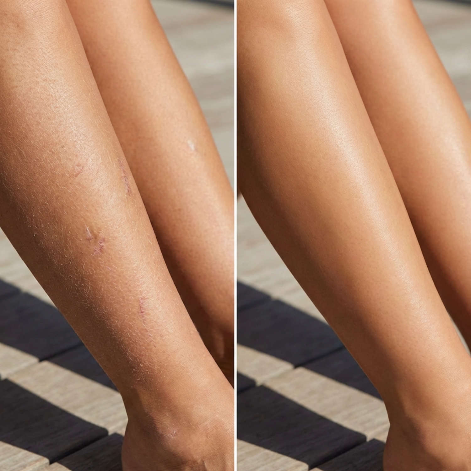 This creates a "soft-focus" effect that visually blurs the hard edges of varicose veins, stretch marks, and cellulite, effectively making them disappear.