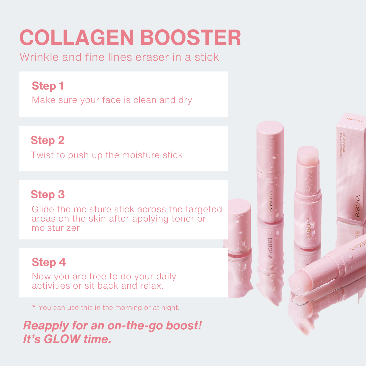 Twist to push up the collagen balm stick. Glide it on wrinkled area after toning and moisturizing.