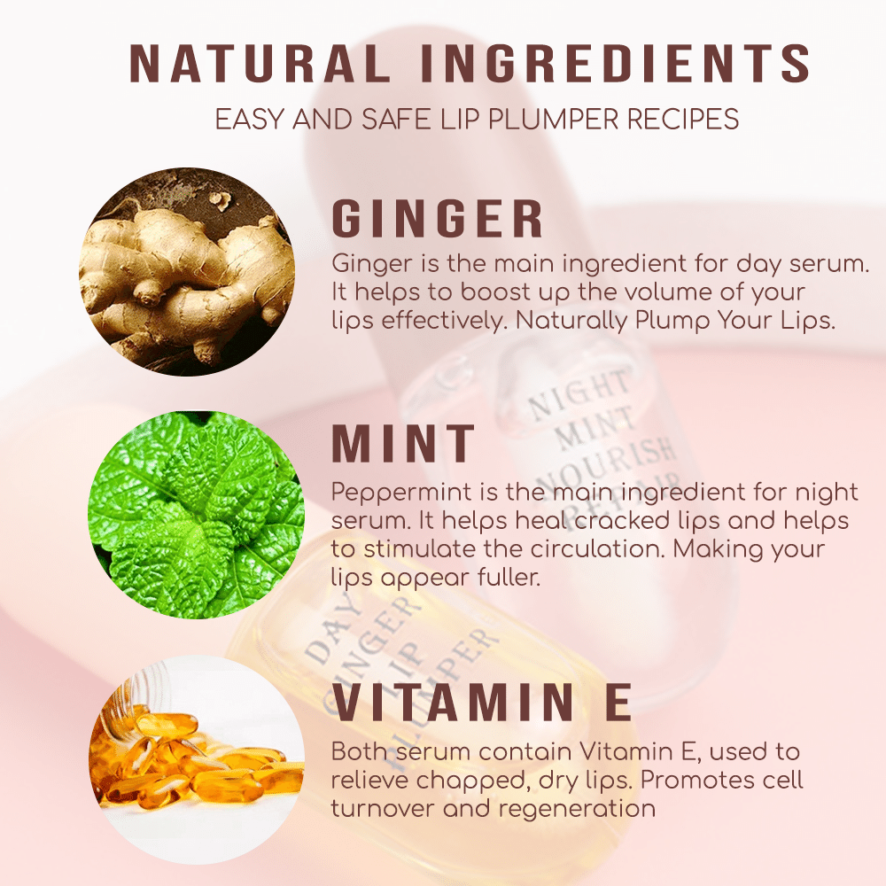 You can use either the applicator or your finger to spread the lip plumper serum across your lips. For best results, it is recommended to use Day Ginger Lip Plumper in the morning and Night Mint Nourish Repair Serum at night.