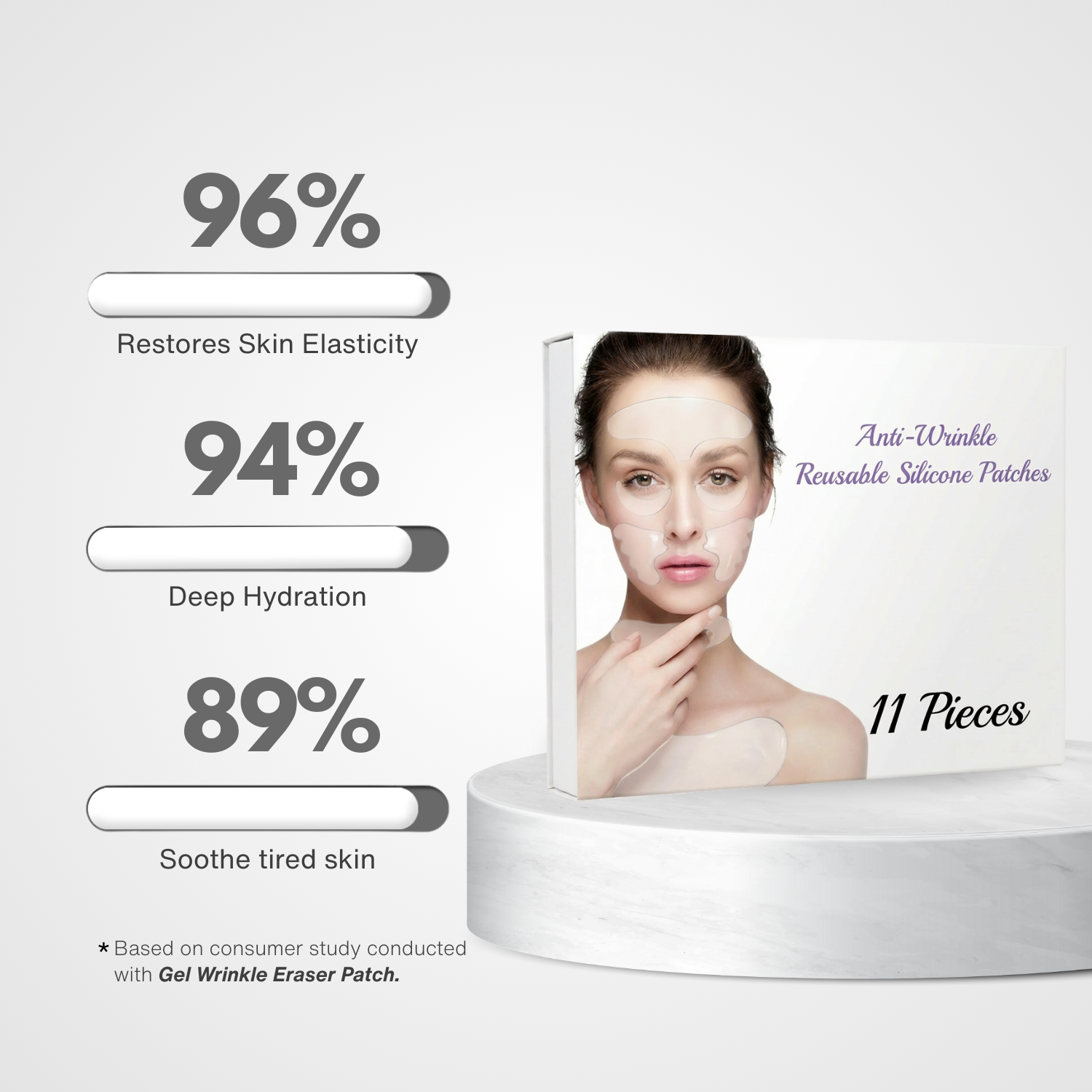 - Format: Pre-shaped, reusable smoothing patches for face & neck