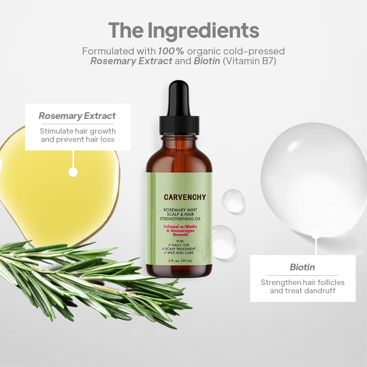 Experience the ultimate solution for hair loss reduction with our Rosemary Oil infused serum. By nourishing your scalp, improving blood circulation, and stimulating hair growth, it tackles the root causes of hair loss.